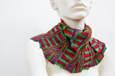 This pattern is suitable for any multicolored yarn. You can even use it with a yarn that has a color gradient. However, you will get the best results when using a dip dyed skein that shows 3 - 5 colors. The two models shown here are knitted with fingering yarn, but you can apply the pattern to any yarn weight.