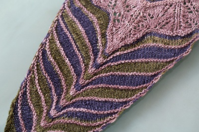 To make a shawl of roughly 88" x 22", the designer used one skein each of Uneek Fingering, Monokrom Fingering and Harvest Fingering.