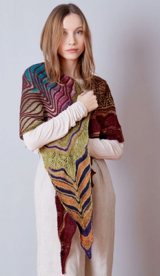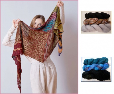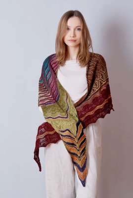 AUTUMN IN ISTANBUL is an asymmetrical trapezoid-shaped kite shawl which combines different knitting techniques. From short row waves, to mosaic colorwork and lace, you will never get bored knitting this shawl.