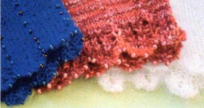 These are a combination of lace and beads and warmth in these fingerless mittens.