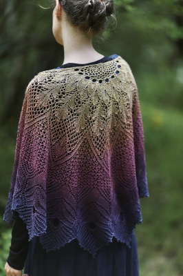 The design is charts only the initial few rows, and suits lace to sport weight yarn, of solid or gradient colouring.