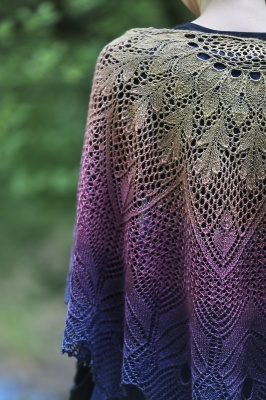 The shawl is named for the forest of Arthurian legend, also known as Brocéliande, and translates elements from Niebling’s lace into a wearable format.
