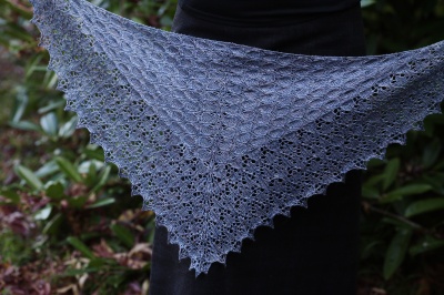Both parts of the shawl are textured with purl columns, leading into a beautifully textured lace edge based on a secret code lace stitch created by Naomi Parkhurst.