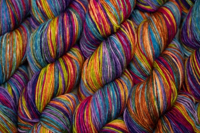 The yarn is the same as what Marin used for her original hat: Uneek Fingering yarn, each skein of 100% extrafine superwash merino, with 425 yards (400m) per 100g skein.