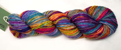 This colorway we offer is a bit different. Ours is #3024 and has, as do all Uneek fingering yarns, moderately long color runs -- I see rich colors including lime, apricot, purple, lilac, wine, teal and maybe a few others I missed.