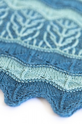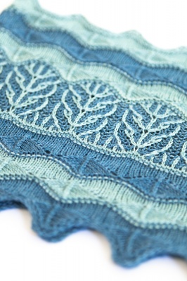 Your kit will consist of two skeins of yarn, both almost-solids (with very subtle variations of tone), one in the colorway called Fjord (a deep blue teal) and one in the colorway called Lagoon (a lighter green teal).
