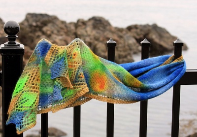 An intriguing concept, LeTissier Designs presents quite a substantial instructional pattern that guides you through knitting your choice of two scarves or a stole and then shows how to paint them.