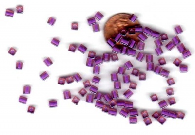 A neat 4mm x 4mm cube fromMiyuki, this one has a lighter lilac lining on an amethyst bead.