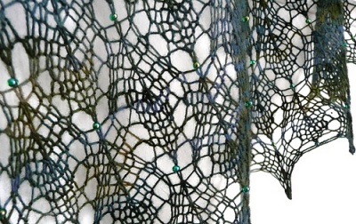 "This project is not difficult even for the beginner lace knitter since the stitch pattern is very simple to knit and easy to memorize. The reverse rows are purled and the addition of beads is optional."