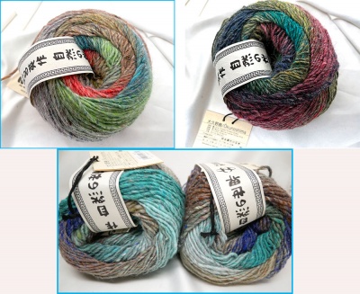Okunoshima is categorized as an Aran weight yarn, having 242 yards/ 100g. It is made up of 35% silk + 28% wool + 20% angora + 17% mohair -- and after a wash, it blooms so beautifully and feels great.