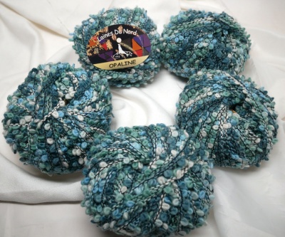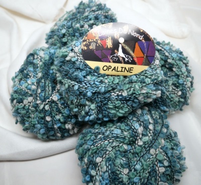 A very interesting yarn, Opaline is a boucle loop in bulky weight of 95% wool + 5% nylon with 66 yards per 50g ball.