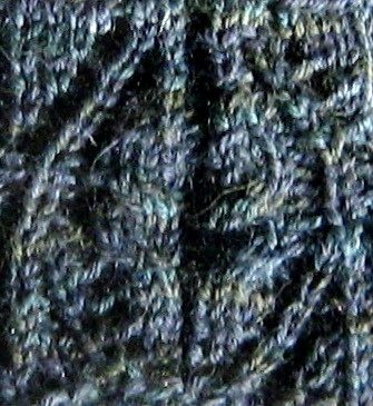 The pattern is a fun little cable/lace combination that adds great depth & texture to the piece. Susan recommends at least a semisolid yarn to properly show off the pattern.