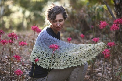 A beautiful new pattern by Nim Teasdale, The Idle Garden is (to quote Nim): "...a flexible, crescent shaped shawl with a textured wildflower body transitioning gently into an elaborate botanical lace with some fun new stitches to learn.