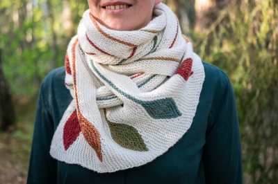Throw it around your neck once, twice, or three times. Pass the tip through the shawl from the front, from the back or from the side. The possibilites of this shawl are almost endless! Combined with the leaf design, Triplett is a fun and colourful project that gives you a really useful and pretty shawl!