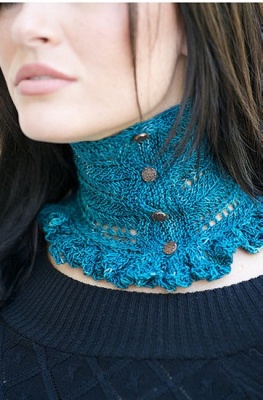 Requiring only 200 yards of whatever fingering weight yarn appeals to you, and four buttons of your choice --- and you end up with a stunning creation, to keep yourself warm and look gorgeous!